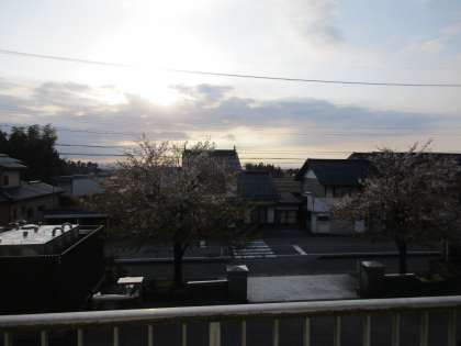 学校の児童玄関前から見えた風景です。今からの天気は、どうなるか予想してみよう。