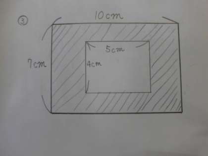 5年生 問題にチャレンジ その3 公開日 2020/04/20 更新日 2020/04/20 第5学年 5年生のみなさん、おはようございます。 今日もチャレンジ問題に挑戦してみましょう。 「体積」という新しい学習の前に、面積の復習をしてみましょう!! 線が引いてある部分の面積を求めましょう。