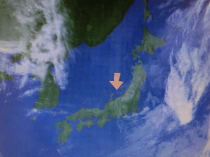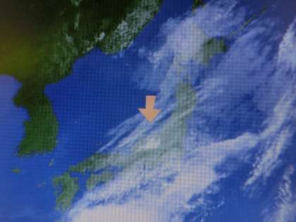 ○天気の問題です。下の写真は昨日と今日(現在)の雲画像です。どちらが今日の雲画像か分かるかな。
