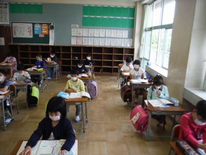 学校再開 3年生 公開日 2020/05/25 更新日 2020/05/25 第3学年 およそ45日ぶりの教室になつかしさと隣との間隔が空けられた机の配置にとまどいが見られました。しかし、マスク越しに見える友達の顔が分かると、自然と笑みがこぼれていました。まだ感染症の心配はありますが、授業を進めながら、少しずつ普段通りの日々が過ごせるように、もう少しがんばっていきましょう。
