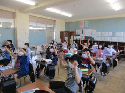 学校では、手洗い・うがいをこまめにしたり、友達との距離を保ったりしながら学習や活動を進めてきました。また、座ったままの体操を取り入れるなど、気分転換を図りながら、楽しい時間も過ごしました。