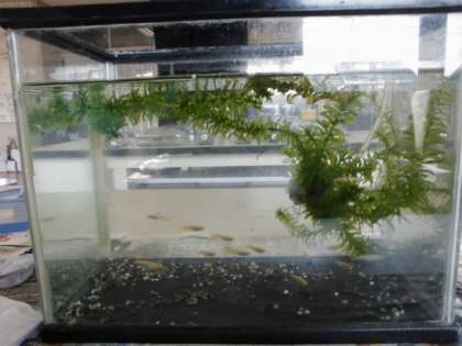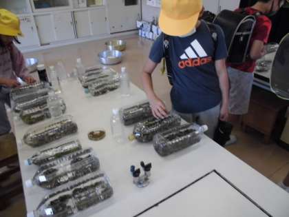 5年生は、理科の学習でメダカの飼育を始めました。毎朝、えさをやったり、休み時間に様子を見に行ったりしながら愛情を込めて世話をしています。