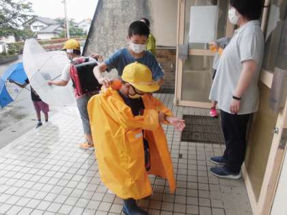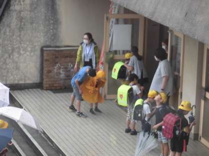 1年生 雨の日の朝 公開日 2020/06/26 更新日 2020/06/26 第1学年 雨が降った日は、カッパで登校する1年生。玄関先でカッパを脱ぐのも大変です。そんな日は、6年生に手伝ってもらいます。頼もしいお兄さん、お姉さんと一緒にがんばっています!