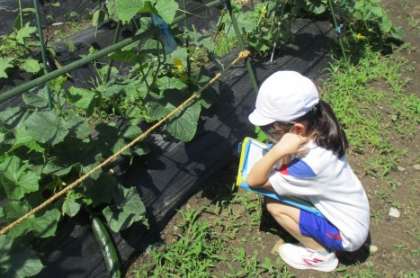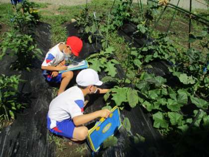 2年生 生活「やさいをそだてよう」 公開日 2020/07/03 更新日 2020/07/03 第2学年 生活科「やさいをそだてよう」の学習で、中庭で育てている野菜を観察しました。 実や葉を実際に触ってみたり、においを嗅いでみたりするなど、国語科「かんさつ名人」で学習したことを生かしながら観察することができました。