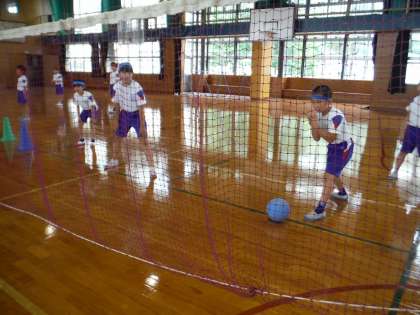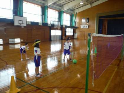 3年生 熱戦フロアーボール 公開日 2020/07/06 更新日 2020/07/06 第3学年 体育科の時間に、フロアーボールに取り組みました。なかなか聞き覚えのない運動ですが、バレーボール型のゲームでボールを床に転がすスポーツです。当初の授業では、なかなかボールが思い通りに転がらず、すぐに点数が入っていましたが。回を重ねるごとに、ねらった場所で鋭いアタックができるようになりました。チームのみんなでパスを回してからアタックする4点シュートもルールに加わり、白熱したゲームが行われました。