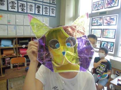 4年生 図画工作科 公開日 2020/07/10 更新日 2020/07/10 第4学年 図画工作科では、白い画用紙と透明なフィルムを使って作品を作りました。 フィルムにはマジックで色を付け、光に透かして楽しみました。 来週は、作品に光を当ててスクリーンに映す活動をします。楽しみですね♪