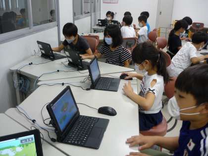 電源を入れることから始まり、自分で月岡小学校のホームページを開くところまでがんばりました。マウスの使い方をゲームで練習するなど、子供たちはとても楽しく学習しました。次回の学習も待ちきれない子供たちです。