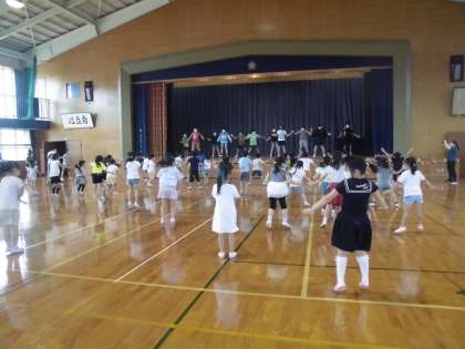 劇やクイズを楽しみ、一緒に「T-KOK」を踊りました。また、6年生が跳び箱や遠投等、スゴ技を見せてくれました。最後は、6年生から手作りのプレゼントをもらいました。「楽しかった」と笑顔いっぱいの1年生でした。
