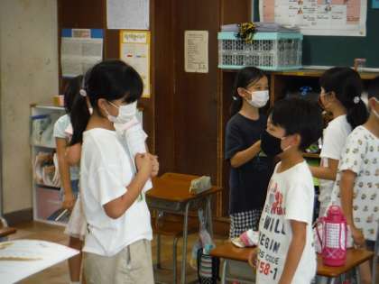 3年生 友達と英語で話そう! 公開日 2020/07/16 更新日 2020/07/16 第3学年 英語の学習では、「How many 〜 ?」を使って、友達に質問をしたり答えたりする活動を行いました。始めは、たどたどしく話していた子も、どんどん自信をもって話しかけていました。