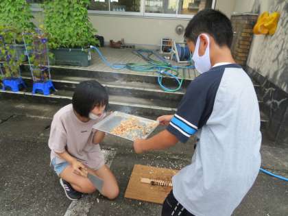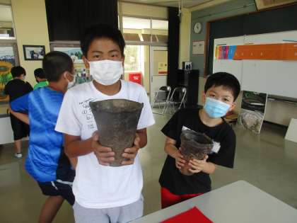 今日は、富山県埋蔵文化財センターから、講師の先生をお招きして、出前授業を行いました。富山県で発掘された出土品について解説を聞いた後、実際に触れたり、火起こし体験をしたりしました。子供たちは、興味をもって楽しく活動に取り組んでいました。