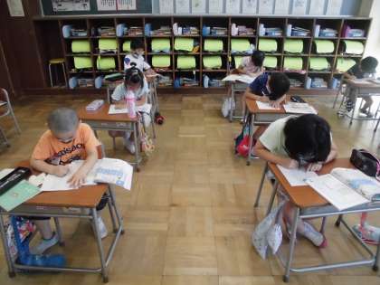 1学期、学校での決まりを守り、友達と楽しく生活してきた1年生。夏休み明けも、1学期と変わらず、友達と協力しながら学習や当番活動に取り組んでいます。