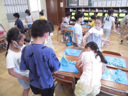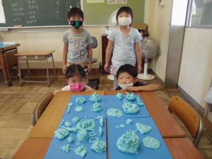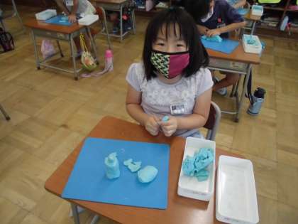 粘土で好きな食べ物や飲み物を作りました。「何作ってる?」「ないしょ!」とかわいい会話も聞こえてきました。
