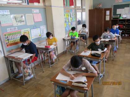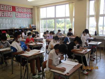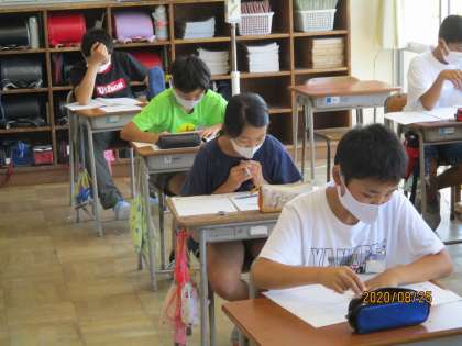 6年生「全国学力・学習調査に挑戦!」 公開日 2020/08/25 更新日 2020/08/25 第6学年 4月に実施予定だった「全国学力・学習状況調査」を、本日行いました。子供たちは、真剣に取り組んでいました。