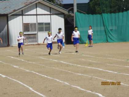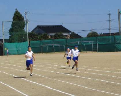 今日の体育の時間に、100m走をしました。子供たちは、最後まで一生懸命走ることができました。