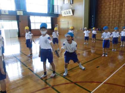 1年生 2年生と共に 公開日 2020/09/02 更新日 2020/09/02 第1学年 今日、初めて2年生と一緒に運動会の練習をしました。 選抜リレーのバトンパス練習、玉入れとダンス。 2年生が素早く行動する姿を見て、1年生も一生懸命がんばりました!