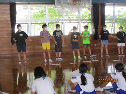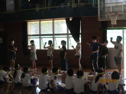 6年生「5年生に応援について話をしました!」 公開日 2020/09/04 更新日 2020/09/04 第6学年 今日、運動会の応援について、6年生から5年生に話をしました。エールや応援歌等、見本を見せながら、一緒にがんばっていこうと各団、声をかけていました。
