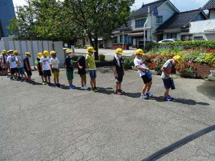 理科の学習では、自分の足下にいつもあるかげについて調べました。まずは、外に出てみんなでかげを見つけました。それから、かげとかげをつないでクラスみんなで1つの輪を作りました。かげの向きを観察したところで、かげがみんなと同じ方向に出ていることに気付きました。「夕方の下校の頃とかげの向きはちがうのかな?」とさらなるひみつについて考えていきました。