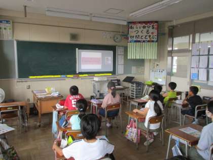 クイズやまちがいさがしを通して、楽しみながら、地球温暖化の原因やわたしたちにできる環境にやさしい行動について、学びました。