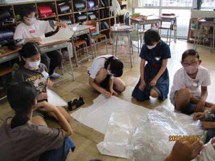 6年生「応援の準備!(赤・白団)」 公開日 2020/09/07 更新日 2020/09/07 第6学年 6年生は、来週の運動会に向けて、応援の練習をがんばっています。今日は、応援で使う小道具をみんなで協力して作りました。