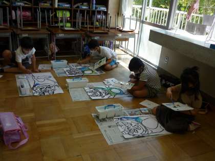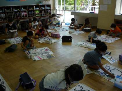 子供たちは、色の混ぜ方に気を付けながら真剣に学習に取り組みました。