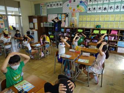 外国語活動では、「What( )do you like?」と言って友達の好きな食べ物や色、スポーツなどを聴き合いました。「I like ピッツァ!」と元気よく答える子供に、ALTの先生も驚いていました。最後に、キーワードゲームをしました。先生の言われる英文を集中して聴いて、キーワードの言葉を言われた瞬間に素早く消しゴムを取り合いました。ゲームを通して楽しく英語を学ぶことができました。