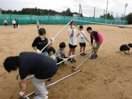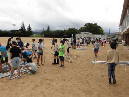 来週の運動会に向けて、高学年で準備を行いました。5年生もテント運びや石拾いをがんばりました。