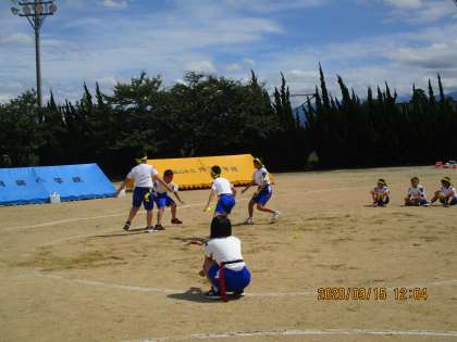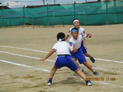 6年生「団体競技予選!−月岡タグ取り合戦」 公開日 2020/09/15 更新日 2020/09/15 第6学年 今日は、5年生と一緒に団体競技「月岡タグ取り合戦」の予選を行いました。競技の結果、17日(木)は、3、4位決定戦を赤団対白団、1、2位決定戦を青団対黄団で行うことになりました。本番では、どの団が勝つのか!?今から楽しみです。