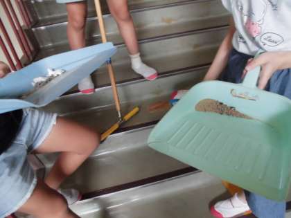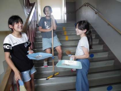 5年生 進んで学校のために 公開日 2020/09/17 更新日 2020/09/17 第5学年 午前中は、運動会に精一杯に取り組んだ5年生。運動会を終えて校舎に入ると、着替えを終えた数名の5年生が廊下を掃除していました。話を聞くと、廊下や階段に砂がたくさん落ちていることに気付き、自主的に掃除を始めたそうです。疲れていても学校のために進んで働こうとする子供たちにとても感動しました。