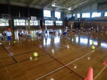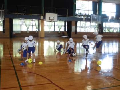 今日は、2回目の学習でした。たくさんの子供が真っ直ぐにボールを蹴ることができました。「やった!」と喜ぶ声も聞こえました。天気のよい日は、ご家庭でも、ボールけり遊びをしてみてはいかがでしょうか。