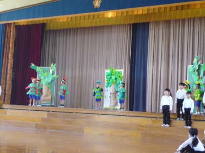 緊張気味の子供たちでしたが、自分の台詞を大きな声で言ったり、大きくふりつけをしたり、練習してきたことを発表することができました。