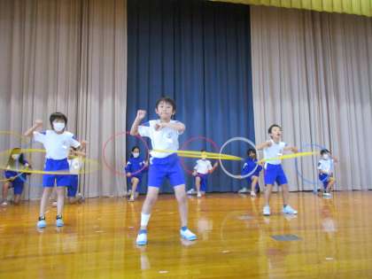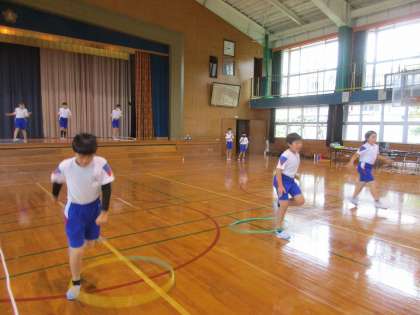 21日に、校内学習発表会を行いました。3年生と5年生を前にし、子供たちは、緊張しながらも楽しんで演技していました。発表会後に振り返りをし、自分のよかった点ともっとがんばりたい点を確認し、本日の練習に生かしました。