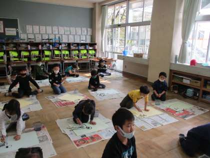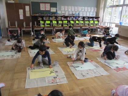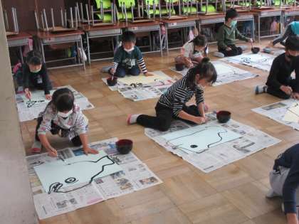 1年生 魚の絵 公開日 2020/10/28 更新日 2020/10/28 第1学年 墨を使って魚の絵を描きました。 口から順にゆっくりと筆を運びながら、大きな魚を描きました。 細長い口の魚や鱗がぎっしりとついている魚など、一人一人の思いがつまった魚になりました。