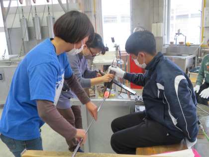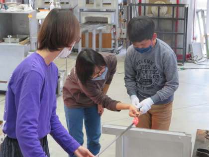 6年生 卒業記念制作〜ガラス工房〜 公開日 2020/10/28 更新日 2020/10/28 第6学年 富山ガラス工房で、卒業記念のペーパーウエイトを制作してきました。 形、色、模様の付け方、泡の大きさ等を自分で選び、ガラス工房のガラス作家さんに教えていただきながら、作品を仕上げました。熱くて溶けたガラスにドキドキしながら、制作を楽しみました。 自分の作品の仕上がりが楽しみです。11/6(金)は2組が制作します。
