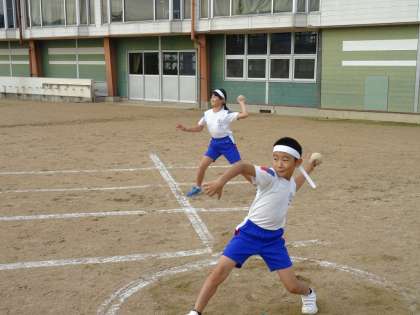 体育科の時間に、ソフトボール投げをしました。2年生の記録を覚えている子が多く、1年間でどれだけ投げる力がついたのか、期待と不安が半分ずつでした。最初に柔らかいボールを使って、手・ひじ・腕・肩・上半身・腰・足のステップと段階を踏んで投げる力を高めていく練習を行いました。実際に投げてみると、昨年よりもかなり記録を伸ばした人が多く、満足いく表情でした。あまり記録が伸びなかった人も、普段からボールを投げる運動に取り組んでいくことで、投げる力を高めていきましょう!