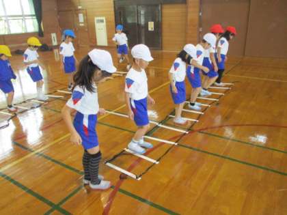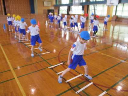 2年生 ラダーに挑戦 公開日 2020/10/30 更新日 2020/10/30 第2学年 今日の体育科では、ラダーを使っていろんなステップを練習しました。難しいステップもありましたが、子供たちは楽しんで学習に取り組みました。