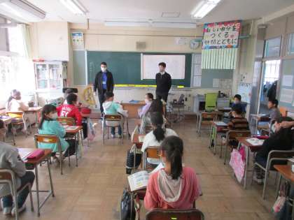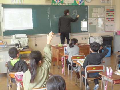 毎週金曜日は、外国語活動の時間があります。 子供たちは、アルファベットを使ったゲームを楽しんでいます。