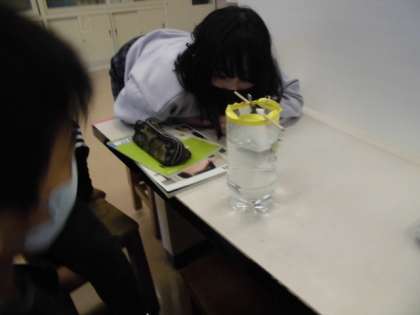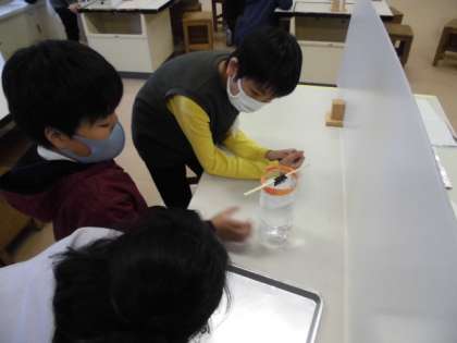 5年生 物のとけ方 公開日 2020/11/02 更新日 2020/11/02 第5学年 理科「物のとけ方」の学習で食塩が水に溶ける様子を観察しました。子供たちからは、「水の中にもやもやがある」「透明な糸みたいなものが出てきた」などと興味深そうに観察していました。