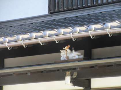 八日町通りには、猫や龍などの彫刻がたくさんあり、子供たちは探すのに夢中になっていました。今にも動き出しそうなくらい、精巧に作られています。