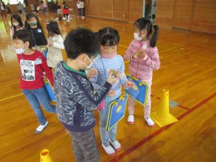 2年生 生活科「ようこそ! なかよし!わくわくランドへ」 公開日 2020/11/09 更新日 2020/11/09 第2学年 今日は、2年2組が1年生を招待して一緒に遊びました。 1年生にプレゼントを準備したり、優しく遊び方を教えてあげたりするなど、どうしたら1年生が楽しんでくれるか考えながら活動していました。 遊んだ後、「1年生と前よりも仲良くなれた」と話す子が多く、自分たちの思い描く「なかよし!わくわくランド」をつくることができたようです。