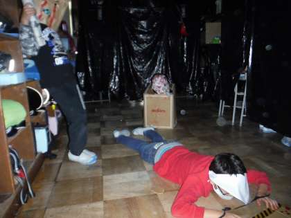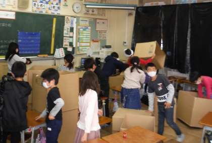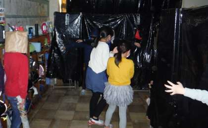クラス集会のメインイベントとして、お化け屋敷を計画しました。子供たちは、どのような感じで登場したらよいかを考えたり、看板などの小道具を作ったりと、初めて作るお化け屋敷にみんな試行錯誤を繰り返しました。クラスのみんなで楽しんだところで、「他の人たちも招待したい!」ということから、隣のクラスの友達を紹介して、一緒にお化け屋敷を楽しみました。カラフルレインボー祭が終わった後には、しっかりと後片付けをしました。少々おどかし疲れはあったものの、自分たちで作り上げた達成感が得られるイベントになりました。