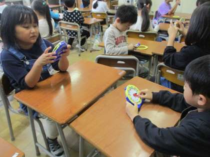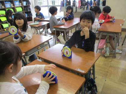 算数の時間、最初の5分間で「すうトレタイム」を行っています。数カードで「10といくつゲーム」や「どちらが大きいゲーム」をしたり、時計の針合わせをしたりしています。友達と楽しみながら数に慣れていってほしいと思います。