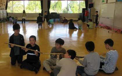 オリエンテーリングの後、バンブーチャレンジを行いました。