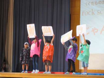 本日は、学習発表会ありがとうございました。子供たちは、難しい英語のセリフに苦戦しながらも、今まで一生懸命練習してきました。今日は、その成果を存分に発揮し、最高の発表をすることができたのではないかと思います。発表後、子供たちは「大きな声でセリフを言うことができてよかった」「1つもミスなく、発表することができた」と振り返っており、どの子供たちも達成感を味わうことができたようです。今日の経験をこれからさらに生かしていきたいと思います。