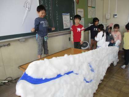 1年生 きょうも たのしく 公開日 2024/10/31 更新日 2024/10/31 第1学年 生活科「あきをたのしもう」の学習で、屋外に「あきみつけ」をしに行きました。その後、グラウンドで元気いっぱい体を動かしました。 国語科「くじらぐも」の学習では、大きなくじらぐもに乗って、物語の「子供たち」はどんなことを話したかを考えました。想像しやすいように高い所に乗ってみました。「楽しい!」「こんな感じかぁ」と想像を膨らませ、ノートに吹き出しをたくさん書いていた子供たちです。