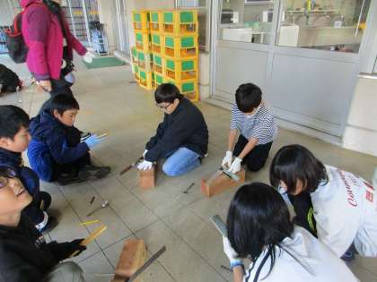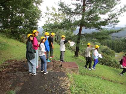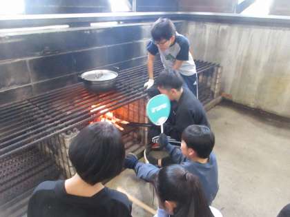 1泊2日の宿泊学習。1日目は朝に少し雨が降ったため活動を変更して村内オリエンテーリングを行いました。班のみんなでポイントを探しながら、クイズに答えたり、ビンゴの数字を見つけたりしました。午後からは竹スプーンづくり。自分だけのオリジナルのスプーンができたようです。夜にはキャンドルサービス。学年みんなで盛り上がりました!