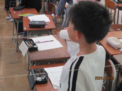 理科の学習では、「音の性質」について勉強しています。「糸電話で声が伝わるのはどうしてだろう」という問題に対して、子供1人1人が予想を立て、今日はその実験を行いました。子供たちは、糸電話の糸が震えていることに気付き、震えが伝わることで音が伝わるということを学ぶことができました。