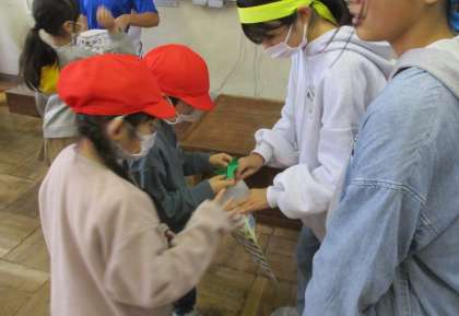 1年生 6年生といっしょ♪ 公開日 2024/11/18 更新日 2024/11/18 第1学年 6年生の国語科の学習として、1年生を集会に招待してもらいました。 クイズに宝探し、障害走など楽しいことが盛りだくさんでした。最後の感想では、「6年生ともっと仲よくなれました」とすてきな言葉がありました。「楽しかった」「またやりたい」と笑顔いっぱいの1年生でした。