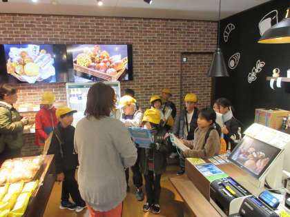 総合的な学習の時間には、月岡の地域のすてきを調べる学習を行っています。今日は、グループに分かれ、自分が調べたいお店へ見学に行きました。訪問したお店は、「月猫カフェ」「神戸屋 南店」「コワフュール・SOUWA」「開発鉱泉」「中華料理ちゅー」「にじパン 月岡店」「榎木屋 月岡店」「ファミリーマート 富山月岡店」です。子供たちは、お店の方にたくさんのことを教えていただき、さまざまなすてきを見付けることができたようです。