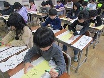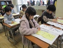 小学校で初めての書初大会、緊張した面持ちでしたが、一画一画丁寧に書いていました。冬休みの間に、たくさん練習したのだな、ということが伝わってきた字でした。みんな、がんばりました!