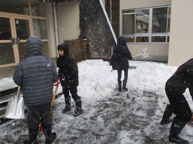雪が積もると、朝来た人から雪かきをしています。下級生が安全に通ることができるように一生懸命に雪かきをする姿はとてもすてきです。卒業に向けて6年間お世話になった学校のために今後も働いていこうと思います!